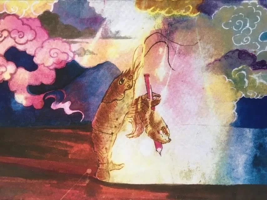 The different rhythms and caresses of the circulating bubbles roused the Lobster’s five pairs of gills to the possibility of absorbing oxygen from air. Over time, the membranes of his gills became more adept at mating his interiority with the air. This was especially notable when the Lobster was wrapped in cold wet towels while the Bellman went to fetch the fresh seawater. One such time, the Lobster crawled out from the towels, stretched his enormous claws upwards and deeply breathed in the aerial ocean without fear that his membranes would collapse. It was a quiet miracle.