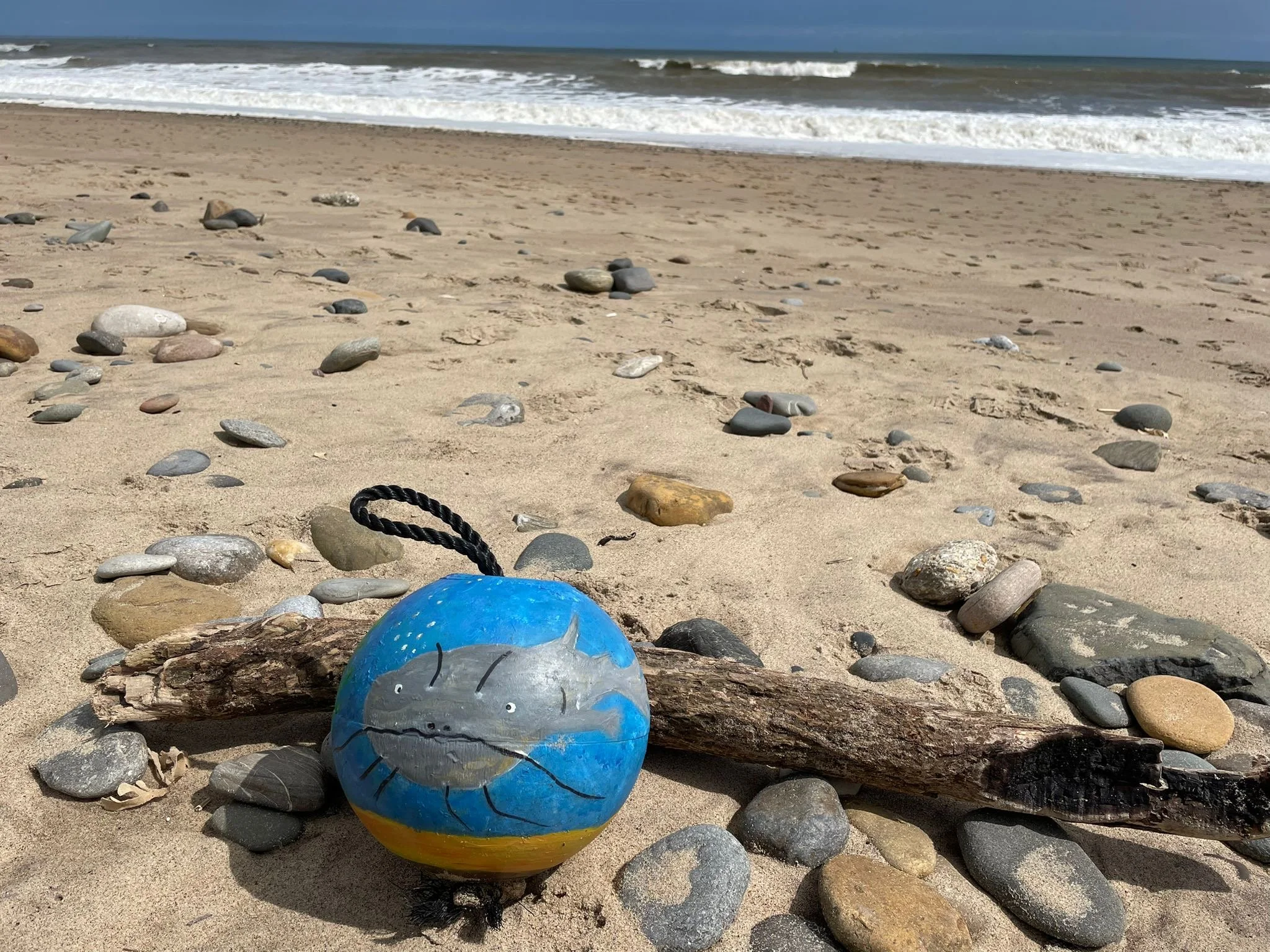 Catfish buoy. A Buoy collected from the Camasunary Bay on Skye – unfortunately it was one of many along with all sorts of plastic waste, and Ocean flotsam and jetsam.